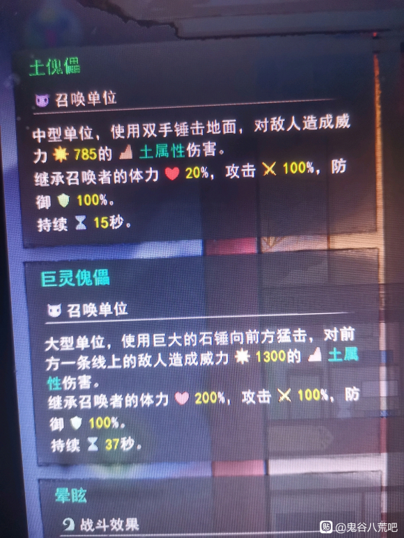 首先我暂定以土系为召唤主系,木系为辅。土系的召唤物从小傀儡到巨灵神,血量大约都有木系的一倍,在高难度下可能会苟得更久?