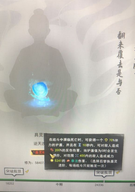到了具灵期逆天改命必须选择盾灵精通,盾灵一系列技能是非常重要的