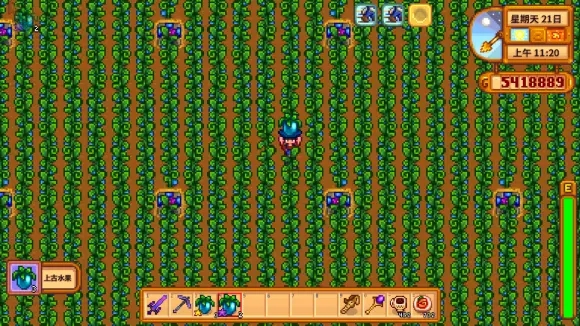 种植建议:农场种植需要留好空隙,有了祝尼魔屋后可以密集种植(祝尼魔可以穿过架子),要想好春秋两季种植其他作物。温室姜岛种植需要留好空隙,空隙处可以补种远古水果。记得疯狂爆小桶!