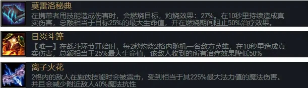剑魔是顶在前排的重装英雄,在出装方面可以做出肉、输出装参半。火甲能增加剑魔的坦度,离子火花可以降低对手的魔抗,鬼书+技能能打出可观的伤害,配合减魔抗爆发更高。后期有多余的输出装直接给到莎弥拉就可以了。