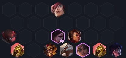 皇子、沙皇围绕着其他单位放置,让神盾的羁绊效果收益最大化,派克和豹女的摆放位置比较随意。