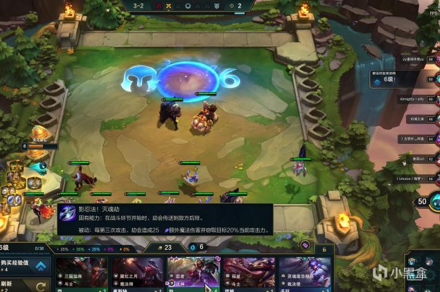 来到3-2阶段,我们已经6连败,血量在50+。这时候通常上6人口,我们还能有45-65金币,开始大D卡。