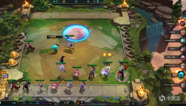 3阶段的时候我们需要继续搜卡提升阵容质量,不能阵容就劫2星剩下的都是1星棋子,那么谁都打不过。在能稳血后我们在攒钱准备上7人口。