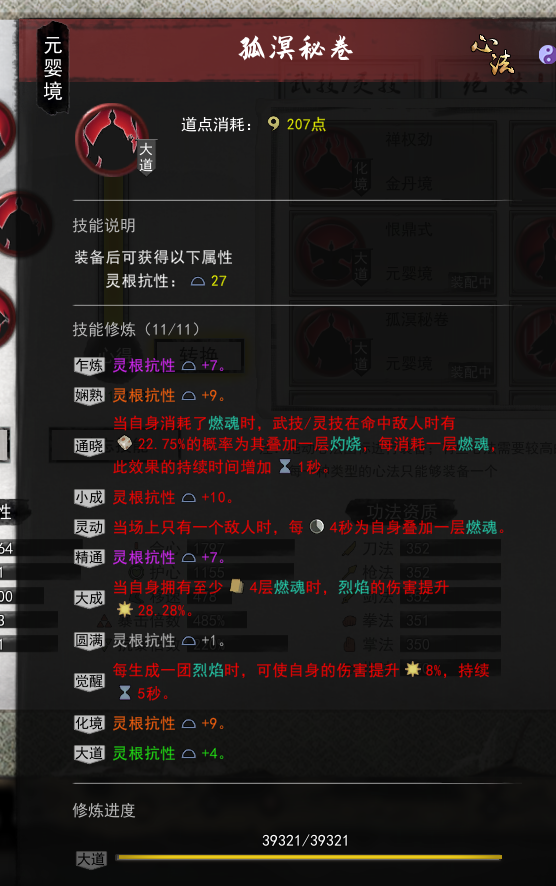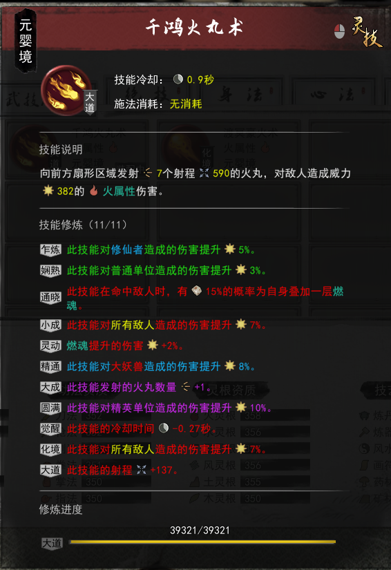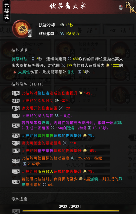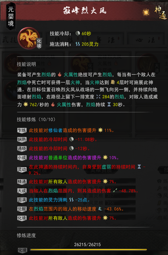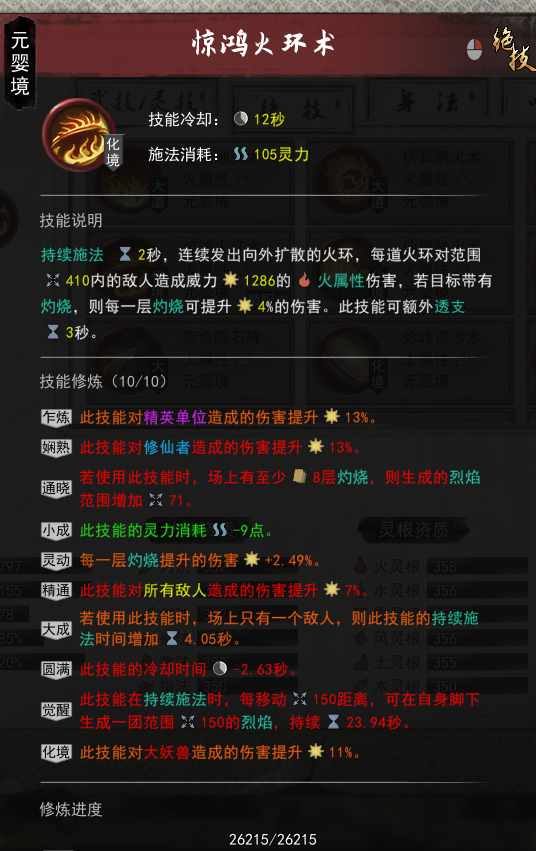 这三个技能都有一个相同的特点,那就是,能够生成烈焰,而烈焰,也是接下来要讲的关键,也是火修的核心所在,下面是神通的图。