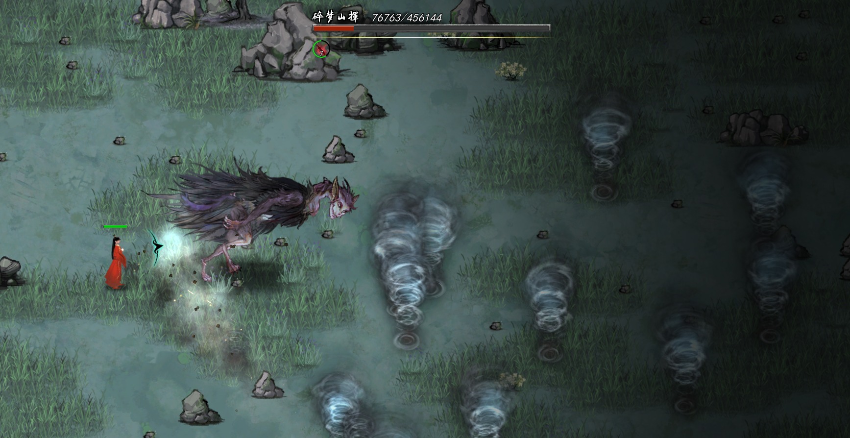 打法技巧:(打法和最早的山挥一致,但是碎梦山挥的体型比较大,这一点会让它跑起来的时候显得很笨,不用担心有更大的碰撞面积,尤其是第一个撞,甚至要比炼气和筑基的山挥更好走位躲避,可以省下一个身法技能第二个撞来放。)