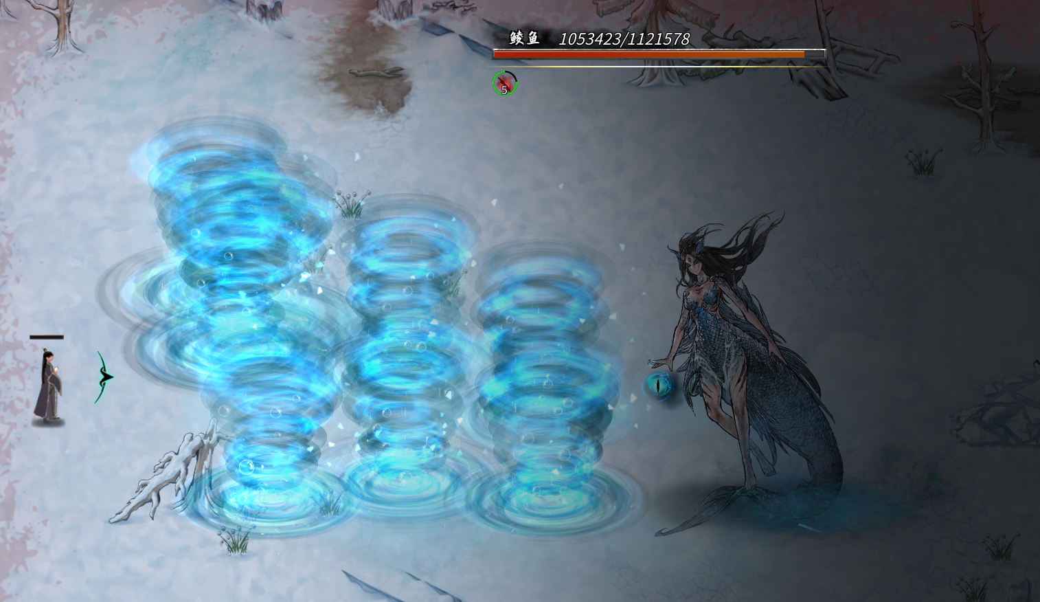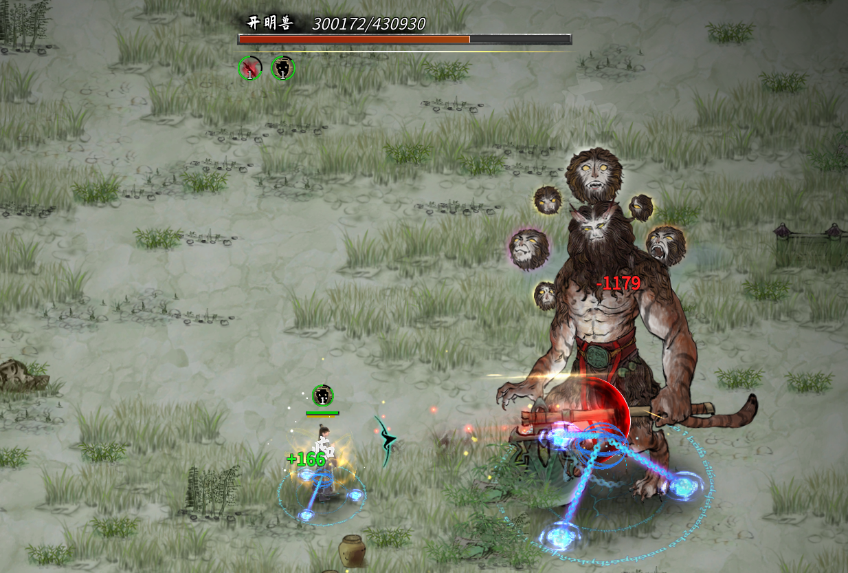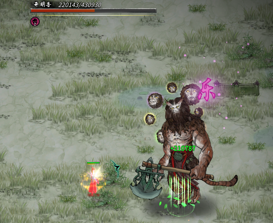 打法技巧:很考验走位的大妖兽,因为技能类型比较多,并且伤害也很高,控制也足,不过也不是太难,两个重点一个是落冰,基本上就是和人面鸮的落石一样,这里推荐因为频率比较高,直接绕圈打就行,近战的话选择技能远一点的普攻来打。第二个就是8道旋风,这个和鸣蛇的雷光差不多,但是伤害更恐怖一点(碰一下基本就没了),打法是引到地图的一侧(上下左右)然后释放身法,绕开旋风往另一侧走即可,旋风丢失目标就会走出地图,如果你是(剑、掌)的身法是加速的话,也可以,直接绕着地图大圈跑它跟不上的。