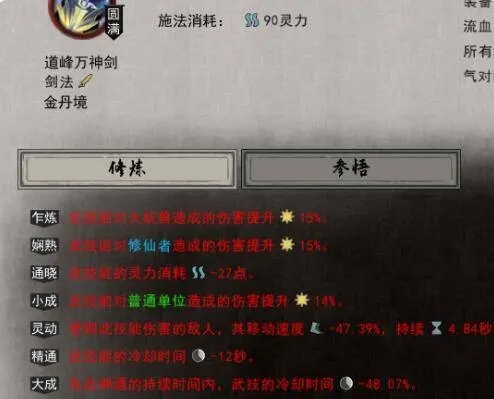 再加上我神通的百分之50可以做到溢出冷却缩减在剑灵神通的状态下。武技的冷却时间缩短百分之48.