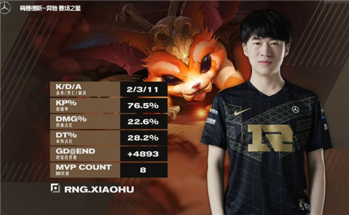 在半年前开赛期之间,RNG就一直有争议,他们并没有进行明显的人员补强,加入的新队员不是明星级别的选手,而xiaohu转战上单位置,更是没有人看好;但没想到xiaohu不仅很好地适应了上单位,更是多次carry了比赛,现在xiaohu已经拿下了8个mvp,按照这趋势很有可能拿下常规赛MVP荣誉。