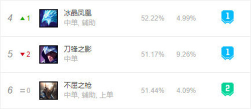 中单潘森已经很多个版本没有遇见了。在11.5版本潘森已经位于T1、T2的交叉口,而且中单潘森的胜率已经达到了51.44%,比中单位长期霸榜的泰隆还要高。中单潘森的单线压制能力、R技能的支援能力很不错,而且中单经济起的更快,潘森能更好的带动节奏。