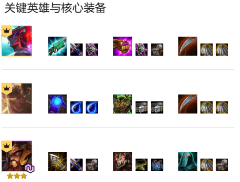 11.5版本,永恩和蛮王迎来了一波史诗级加强,新版蛮子输出效率明显高了不少,配合永恩破甲和时光复活,后期蛮王就是战神一样的存在。这个阵容克制大多数脆皮阵容,例如:天使、龙法、6决斗、重射等;比较怕抱团阵容,6盾霞,6森霞等
