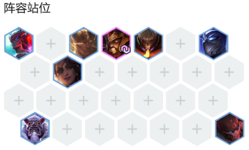 前排顶第一排尽快吃伤害放技能,蛮王正中间,防止被集火,基本上类似决斗亚索的站位。打刺客或者对面抱团缩角落的,可以换成沉底站位来应对。