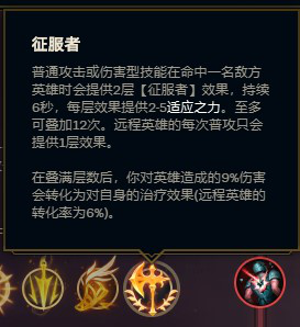 S11 征服者再次被调整,远程吸血仅有6%,而且12层对莉莉娅来说叠起来并不轻松,当你叠满12层时你的主要输出技能已经打完了。而且精密系的小符文对莉莉娅的提升也不大,不建议选择。