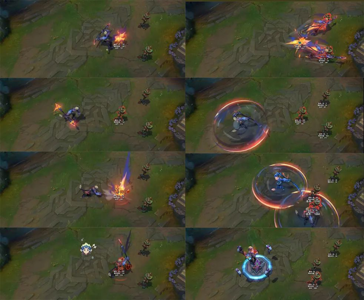 猴子这款皮肤先来说模型,从原画上可以看出猴子这次有清晰的人脸造型,和盖伦是共享原画,模型方面显得很单薄,头部和尾部的造型不是那么好看,特效方面的表现还不错,整体为暗金和蓝色配色,Q技能开启时武器的高亮效果不是很明显,这和猴子其它皮肤的Q技能有些区别,W技能假身消失的时候会出现一个表情,R技能的特效还不错,暗金色的外圈光效挺好看,音效方面表现尚可,总体来看,猴子这款皮肤中规中矩,只是这个模型实在有点不太给力。
