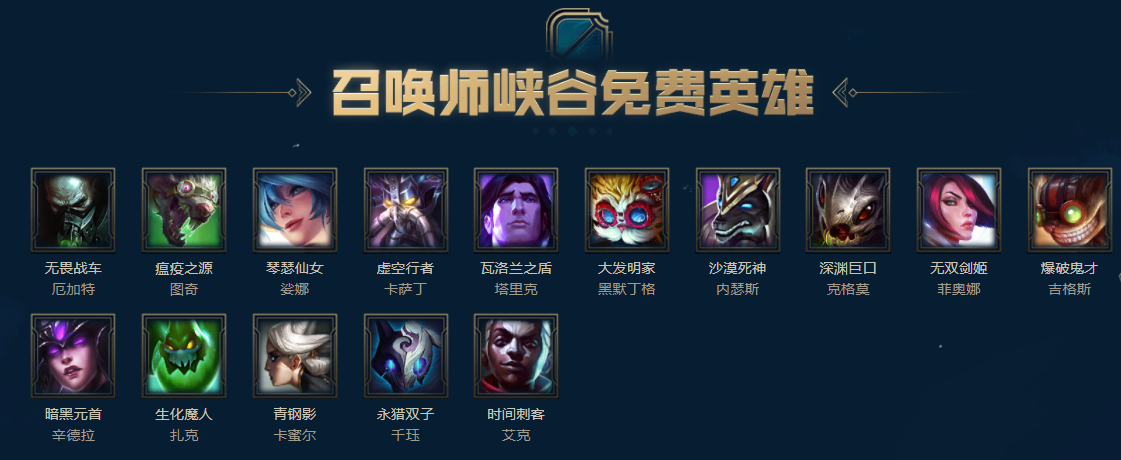 街机cn 来源:厂商 发表于:2021-03-11英雄联盟3月12日周免英雄有哪些?很多小伙伴可能还不清楚本期的周免英雄有哪些吧,今天小编给大家带来lol493期周免英雄一览,快来看一下吧。