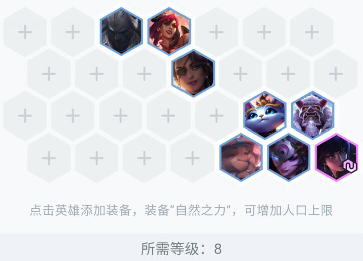 剑魔和猪妹放在第一排的中间位置,豹女放在最后一排的边角,希维尔和提莫并列放在她的边上,另外悠米和时光把豹女围起来就可以了,因为莎弥拉的射程缩短了,所以我们可以把莎弥拉适当放前面一点,这样就能让她更快地打出伤害了。