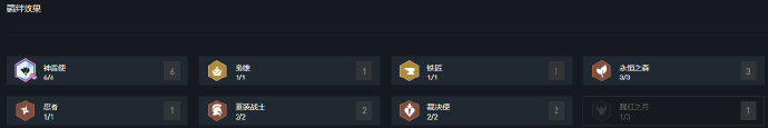 触发效果:6神盾使&1枭雄&1铁匠&3永恒之森&1忍者&2重装战士&2裁决使