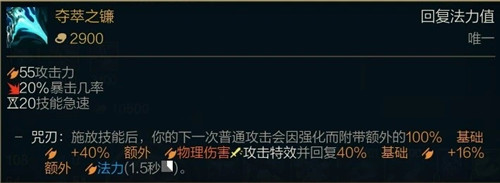 当夺萃搭配挺进者,剑姬需要的属性包括生命值、攻速和移速(神话被动与物理伤害的移速加成)就都有了。