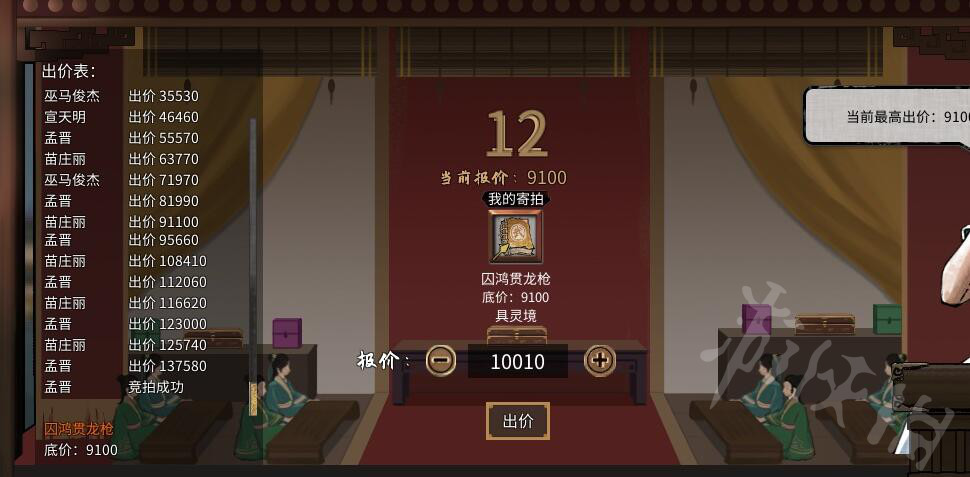 看了整场拍卖会,npc的购买规律后我发现,特别是具灵期的书籍卖的最多,基本都会抬到10-15万不等。