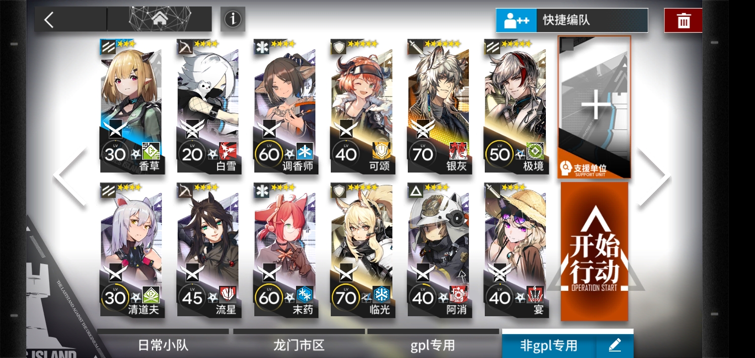 除了银灰基本都可以上下位替换(宴只是为了快点打完,白雪别拿五星的那哥替换我觉得会出事)