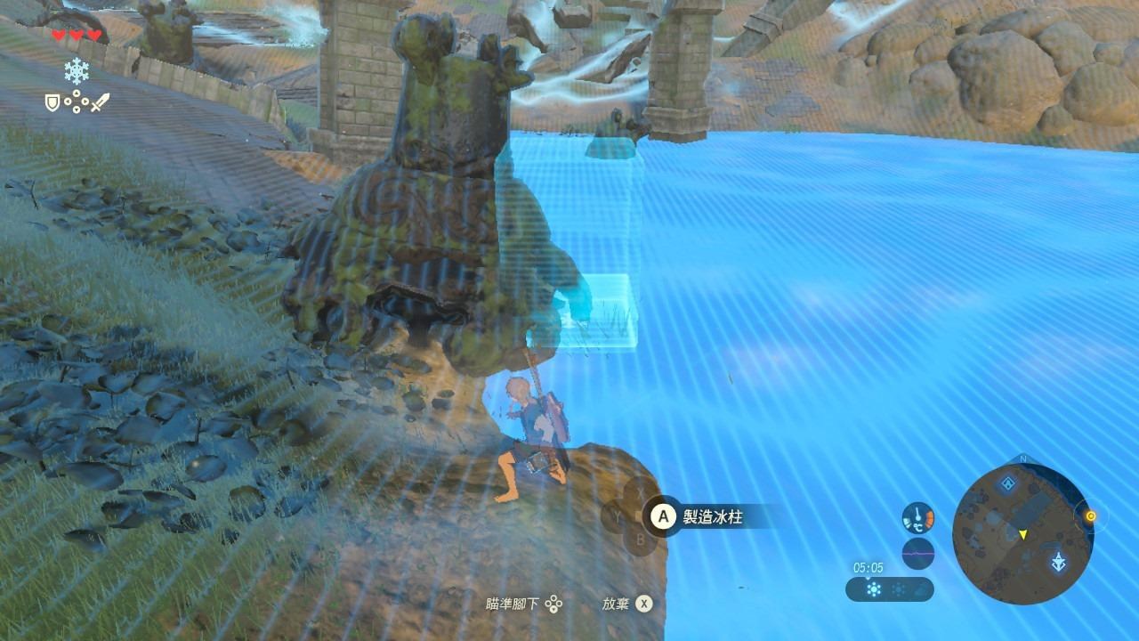 以底座正方形左下的角往残骸内缩一点的位置制冰,如果残骸翻太低就打掉冰柱再制一次
