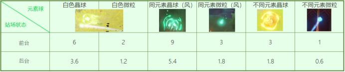 关于不同元素球的充能情况如图