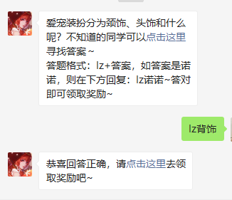 问题:爱宠装扮分为颈饰、头饰和什么呢?