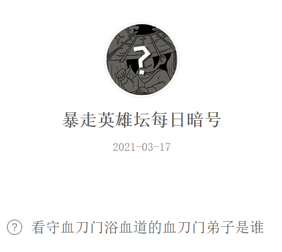 《暴走英雄坛》2021年3月17日微信每日暗号答案