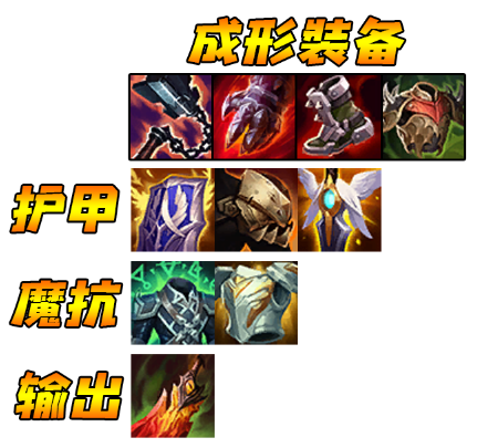 第三大件则根据场上局势决定,如果对面菜刀队的话那装备选择空间极大。死亡之舞,反甲,蓝盾,甚至复活甲。