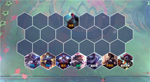 所有棋子站后排吃皎月的鸟盾buff,因为鸟盾只能提供给五个人,所以盾要给最关键的人吃、