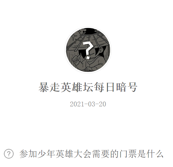 《暴走英雄坛》2021年3月20日微信每日暗号答案