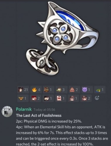 街机cn 来源:厂商 发表于:2021-03-20《原神》1.5版本更新后将会上线两个全新的圣遗物,分别是终末愚戏和千岩牢固,其中终末愚戏是一个非常不错的伤害类圣遗物,很多小伙伴都想知道原神终末愚戏套怎么获得,属性怎么样,下面小编就给大家带来《原神》圣遗物终末愚戏套介绍,一起来看看吧!