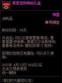 这个宠物是近日才出的新活动,像素勇士大冒险中的一个BOSS,外观如上图所示。