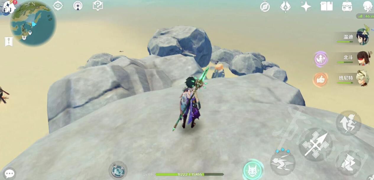 1、蜥蜴就在这个石头缝中间,蜥蜴尾巴是做饭袋(蒙德声望5级送,可以快速进食)的材料需要20个。