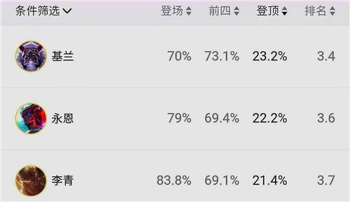 而排在第二名的是“玉剑摄魂使”,这得益于男刀的增强,而4摄魂使得羁绊,让男刀的实力更加强劲,前四率82.1%,登顶率28.6%,也不低了。