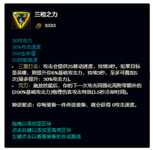每装备一件传说装备,获得3攻击力、3技能极速、3移动速度