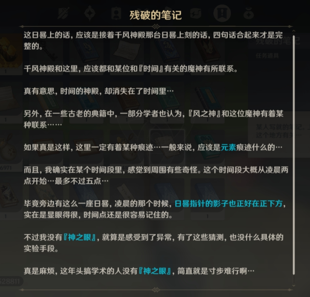 (原来这里曾是时间的神殿。假如派蒙就是时间之魔神的话,那岂不是说——派蒙的神殿消失在了这里?)