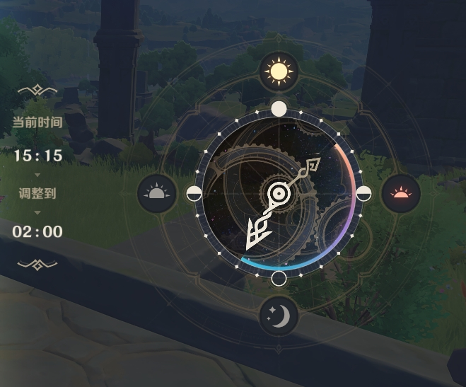(不在2:00—5:00时间段内是无效的,需要重新调整时间),打开元素视野,我们可以看到日晷开始发光。