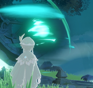 接下来的操作和之前一样,调整时间到2:00—5:00,开元素视野,用风元素攻击风球。攻击完四个风球后会出现许多风史莱姆。清除完风史莱姆后再次使用元素视野,会出现一个巨大的风球。