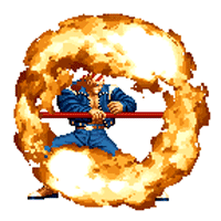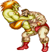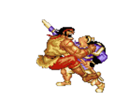 作为格斗游戏的天尊的代表人物的招牌技--波动拳,被SNK的这个小东西糟蹋得不轻。由于合金弹头玩的不多,这个俘虏有没有攻击力,我也不清楚,反正记得最后的首脑战他也出来捣过乱。SNK的恶作剧,也从另一个方面反映了隆在格斗界的地位。