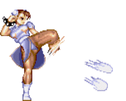 格斗界元祖女王春丽的百裂脚,各位早在街霸2的时代就领教过了,即使是挡着,其耗血量亦相当可观。来自豪血寺的小子何德何能,居然也会出这招,春丽姐姐也从未公开承认收过徒弟呀。看来是偷学的,只学了个架势,不得内功心法,这不攻击力果然很弱。