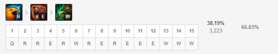 前期要以刷野效率为主,Q、R这类伤害型技能优先点,3级以后再加上E、W技能来强化自身的全能性。