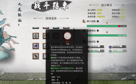 比如这里是风最大,掌剑其次。成品就是风属性道魂,可以和掌属性,剑属性道魂融合。