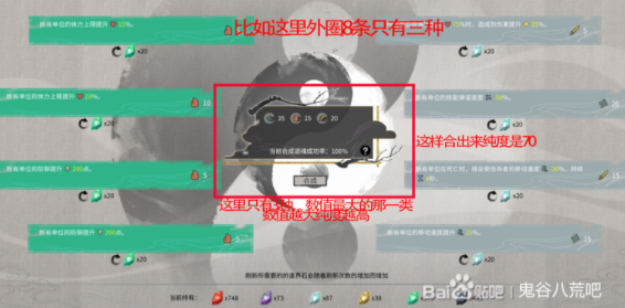 8条全部刷出来之后,每一条后面的资质共同组成中间合成框。