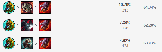 常规的征服者搭配启迪系,猴子的E起手WQ接A很容易直接打满十层征服者,配合腐败药水换血丝毫不虚,征服者与猴子被动契合度高,鼓励猴子的对拼,看对线如果是发育英雄可点出鞋子,若是对拼则可选择药水加饼干,坚毅不倒可以增加猴子丝血的时候一个反杀能力。