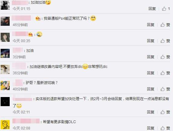 在评论区,有网友说“加油,期待后续dlc。神作从来不怕等”“bug这算修完了吗?下次整点新内容吧”“加油继续改善内容,不要放弃dlc”