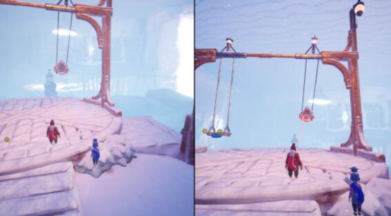 进入需要三座破冰塔的小镇后,激活左边的破冰塔,下方有两座秋千。通过磁力旋转有人坐着的秋千直至其环绕一圈并飞出。