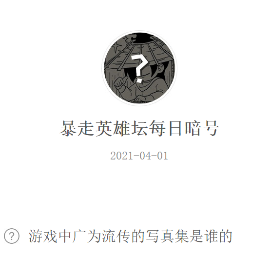 《暴走英雄坛》2021年4月1日微信每日暗号答案