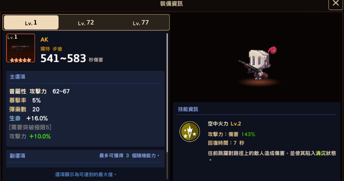 带把有空中射击这个技能的枪直接过两个用技能飞过去,或者等练度高了再来 普通攻击直接秒木桩的时候