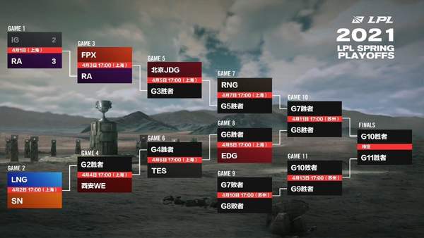 街机cn 来源:厂商 发表于:2021-04-03《英雄联盟》2021 LPL春季赛季后赛正火热进行中,在前两日的比赛中,RA 3:2力克IG晋级8强,而SN则是3:0兵不血刃拿下LNG同样晋级,下一轮RA将面对的是严阵以待的FPX,而SN则要面对WE。在赛场腥风血雨的同时,@英雄联盟赛事宣布,2021 LPL春季赛决赛将于4月18日在武汉举行。