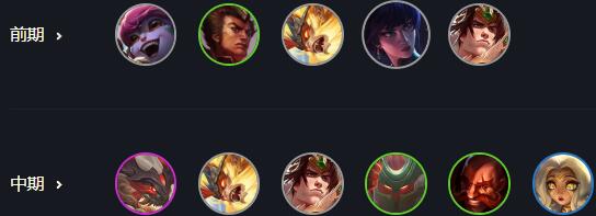 前期可以使用两神射搭配上三国和重装来过渡,妮蔻的装备可以先给到豹女来进行过渡,保证前期的强度。中期的话凑齐四重装三山海,坦度足够,妮蔻的输出装备也直接给到,稳定血量后开始上秘术英雄。